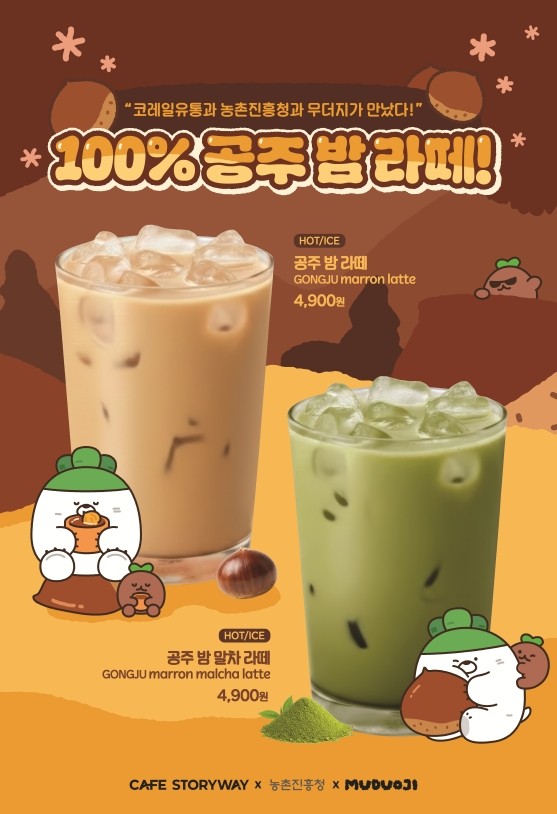농촌진흥청과 코레일유통은 충남 공주 특산물인 밤을 주원료로 한 겨울 한정 음료 ‘공주 밤 라떼’와 ‘공주 밤 말차 라떼’를 출시하고, 2026년 2월까지 코레일유통 직영 카페에서 판매한다고 밝혔다.