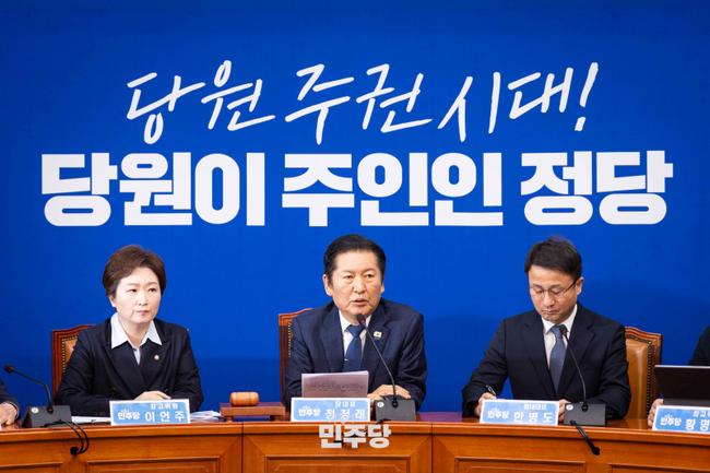 경제·통상 현안에 대해서는 대미투자특별법의 시급성을 강조했다. 정 대표는 “여야 합의로 물꼬를 튼 대미투자특별법 특위가 다음 주 구성돼 한 달간 집중 입법에 돌입한다”며 “관세 재인상 위험을 막기 위해 특별법 처리는 무엇보다 시급하다”고 말했다. 이어 “입법 지연으로 관세가 다시 25%로 회귀한다면 국회가 기업의 발목을 잡는 것과 다름없다”며 국민의힘의 초당적 협력을 촉구했다.