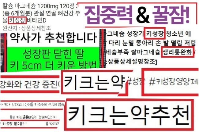 어린이 키 성장을 내세운 식품과 의약품의 온라인 부당광고와 불법판매가 대거 적발됐다.