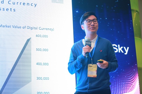 제네시스 캐피털 CEO 펑츠가 2018 토큰스카이 블록체인 컨퍼런스에서 연설하고 있다