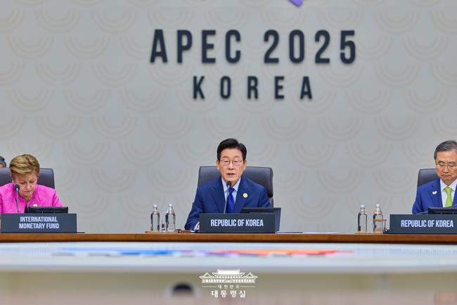 이 대통령은 “한국이 APEC 의장국으로서 서비스, 디지털 경제, 투자 활성화, 구조개혁 등에서 합의된 사항들의 이행을 점검하고, 견고한 민관 협력을 통해 모두가 성장의 기회와 과실을 함께 누릴 수 있도록 하겠다”고 밝혔다.