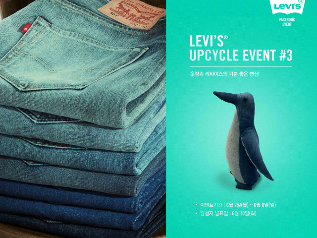 https://www.facebook.com/Levis.korea)에서는 아기자기한 데님 소품을 증정하는 업사이클 이벤트도 진행된다. 리바이스코리아 페이스북과 업사이클 이벤트 게시물에 ‘좋아요’를 누른 후, 리바이스와 관련된 내용의 댓글을 남기면 매주 5명을 선정해 당첨자들이 가지고 있는 오래된 리바이스 데님을 전달받아 데님 쿠션, 데님 파우치, 데님 인형 등 인테리어 소품으로 제작해준다.